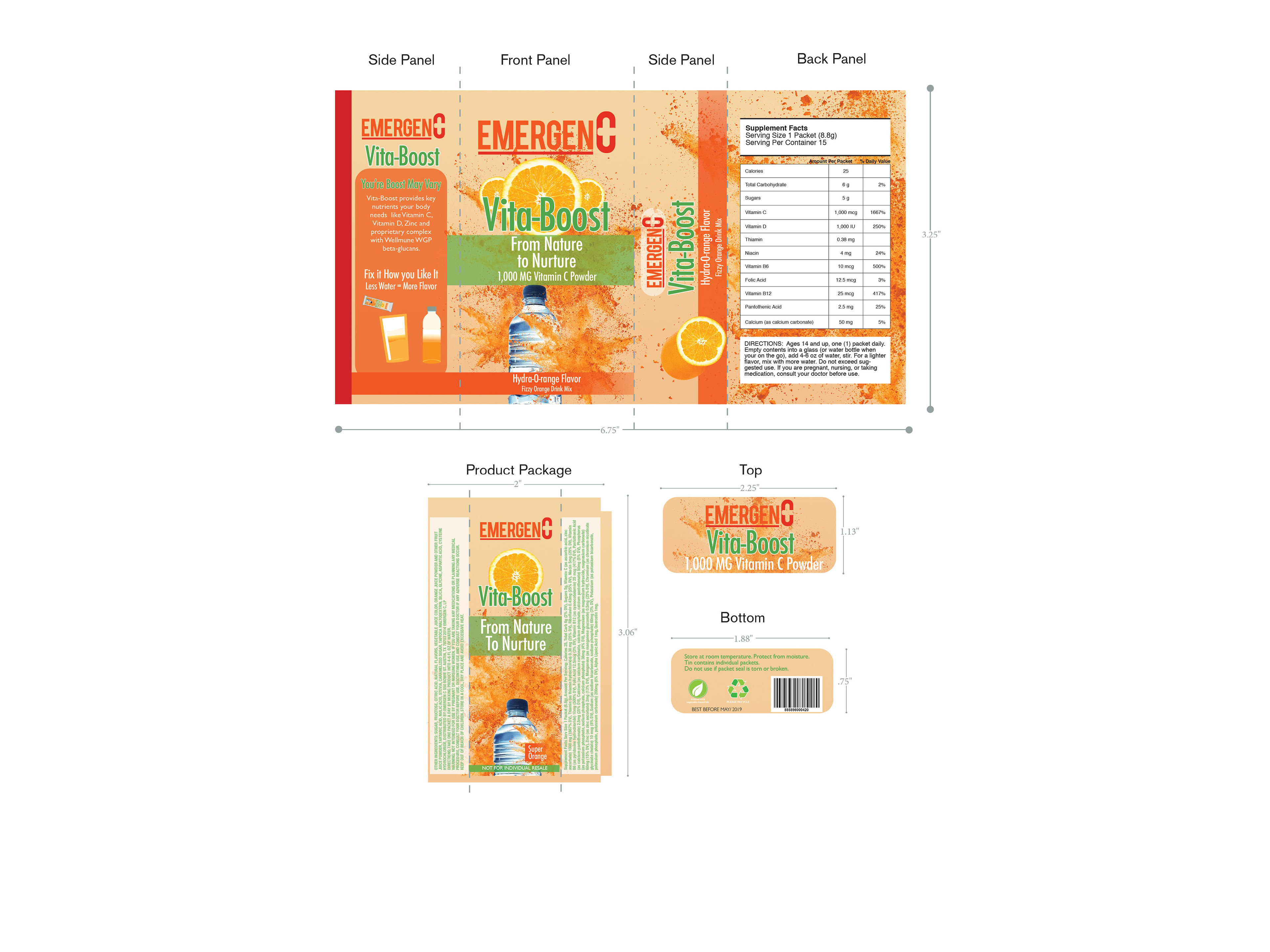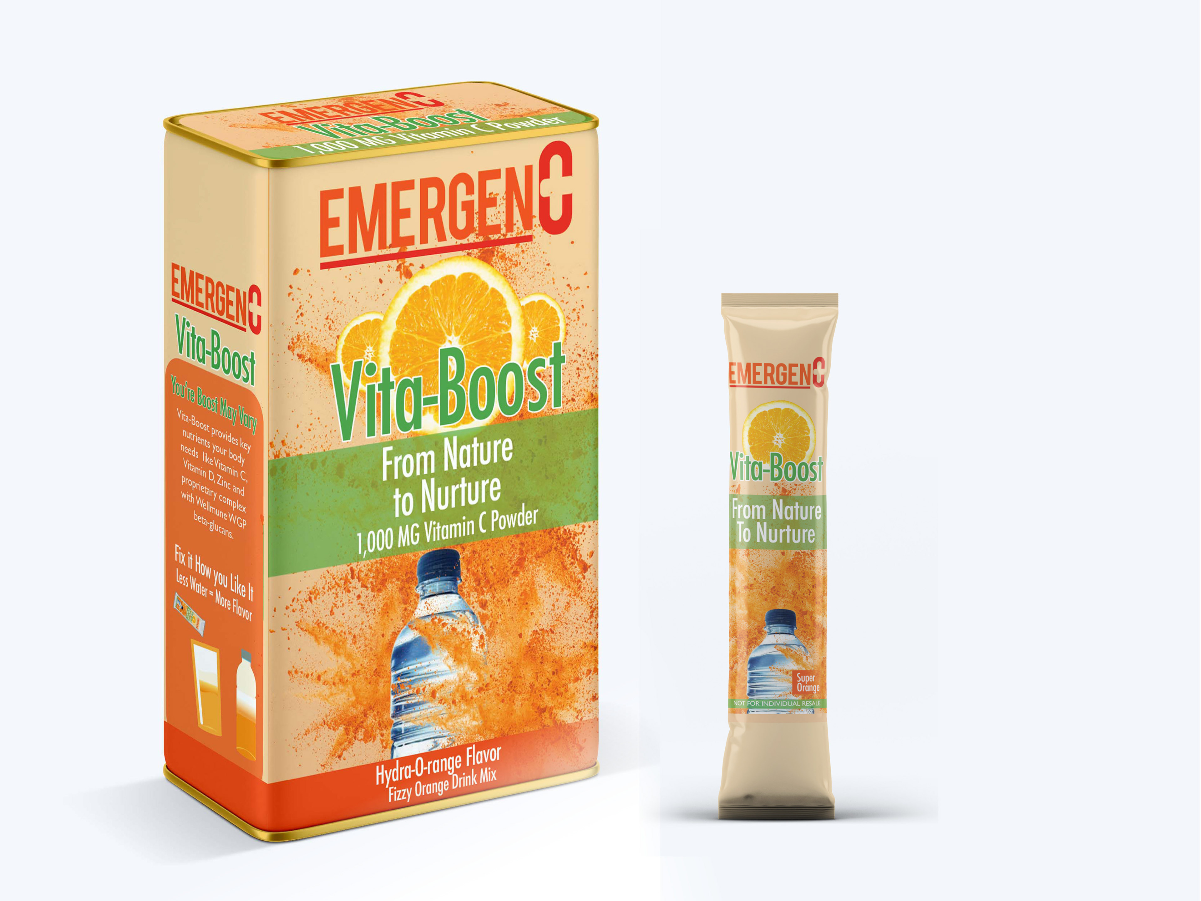 Redesign for EmergenC vitamin C powder in convenient to go packaging.