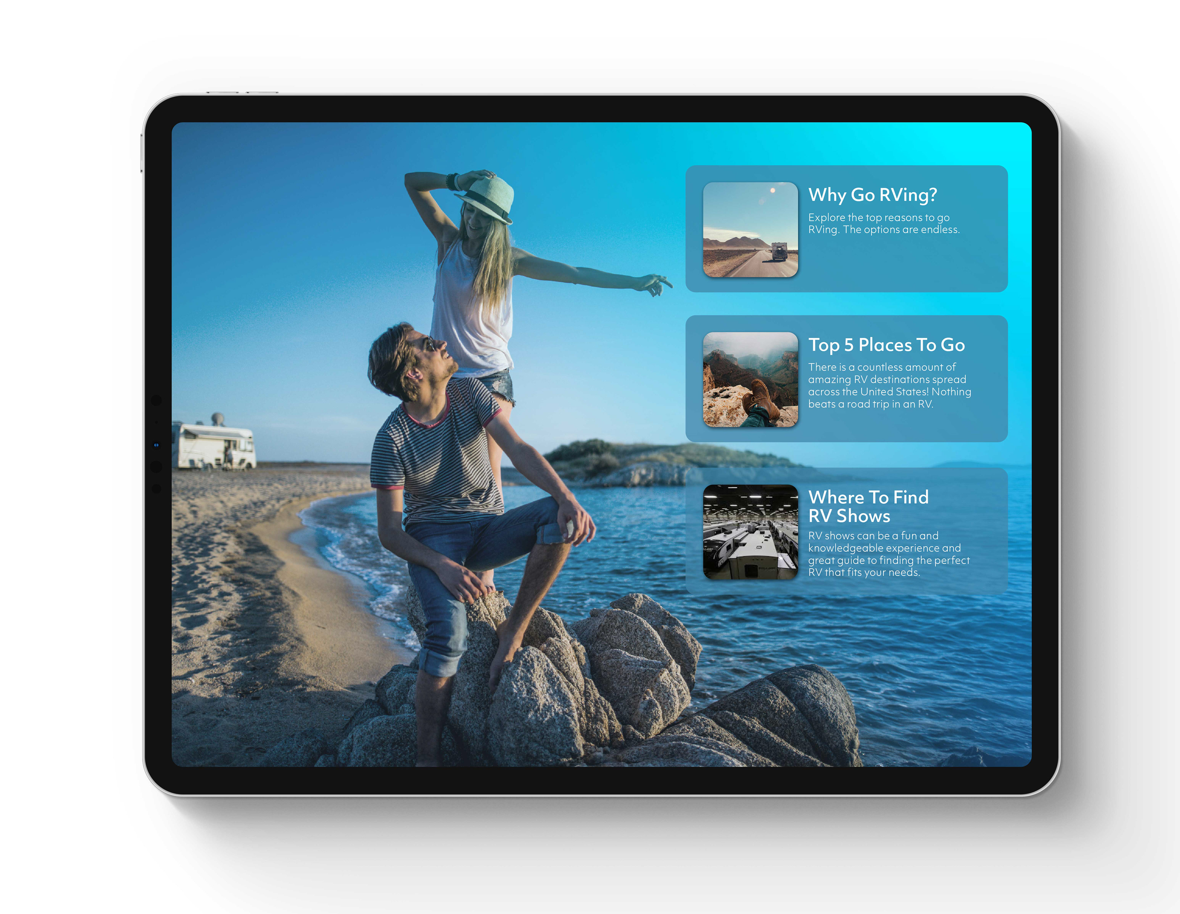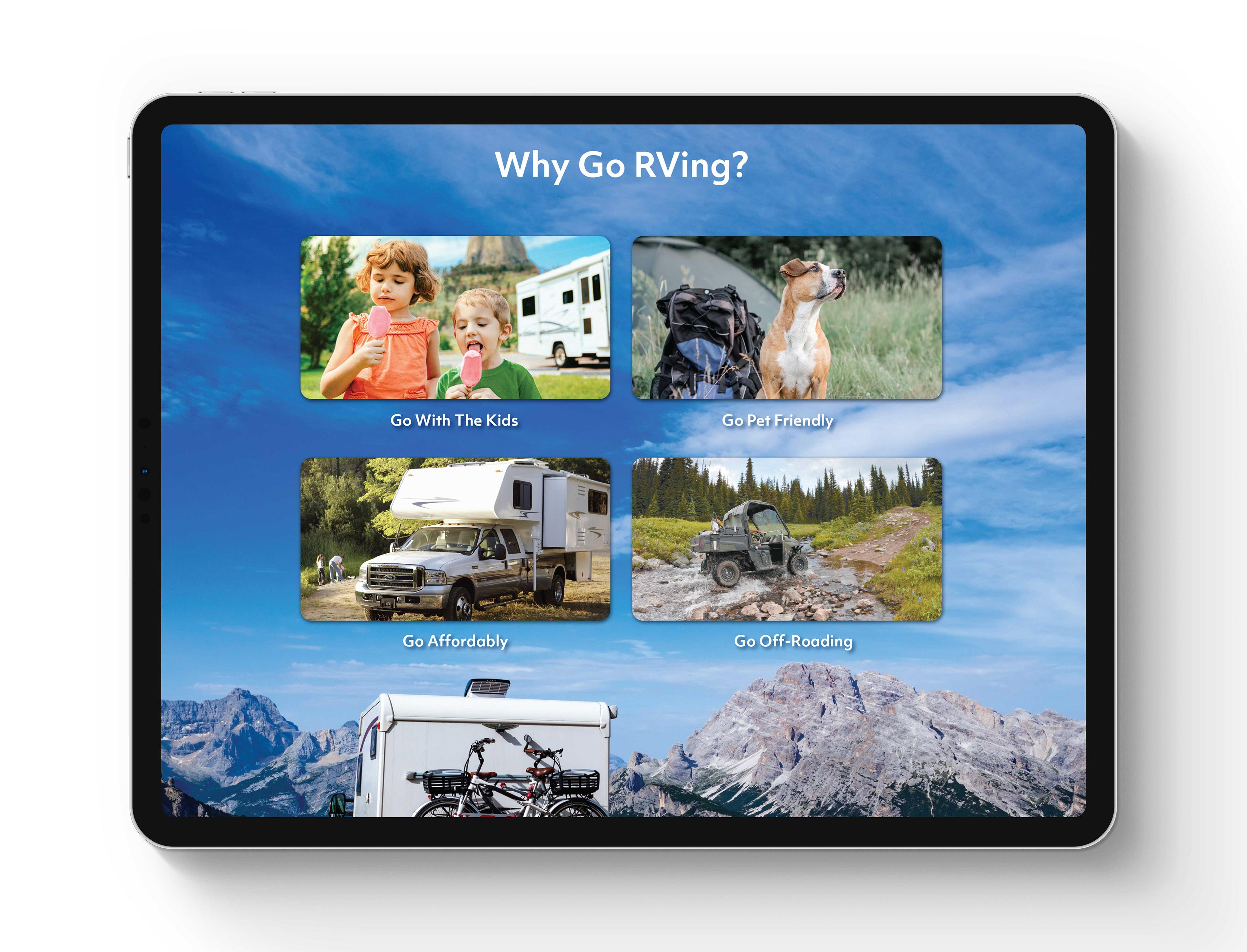 Go RVing is an interactive epublication brochure created to advertise the benefits of RVing.
